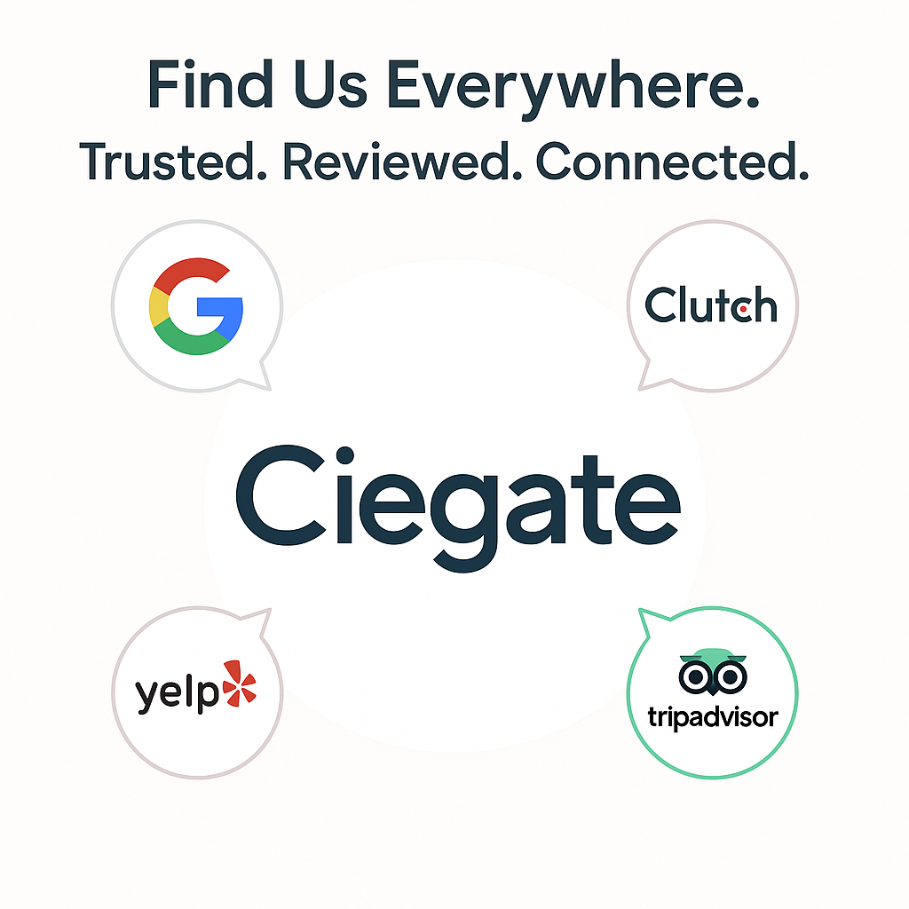 This page gathers all the verified online business listings where Ciegate is featured — including platforms like Google, Yelp, Clutch, TripAdvisor, and more.